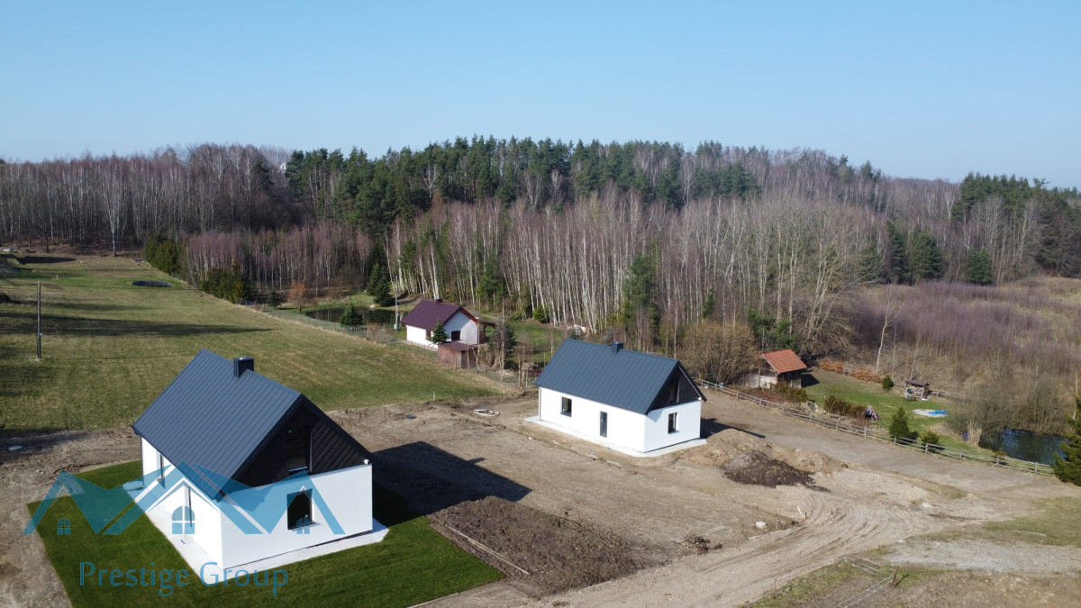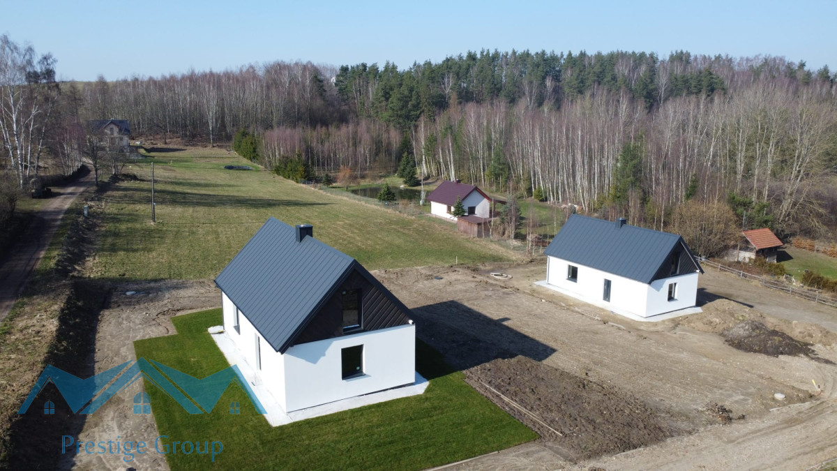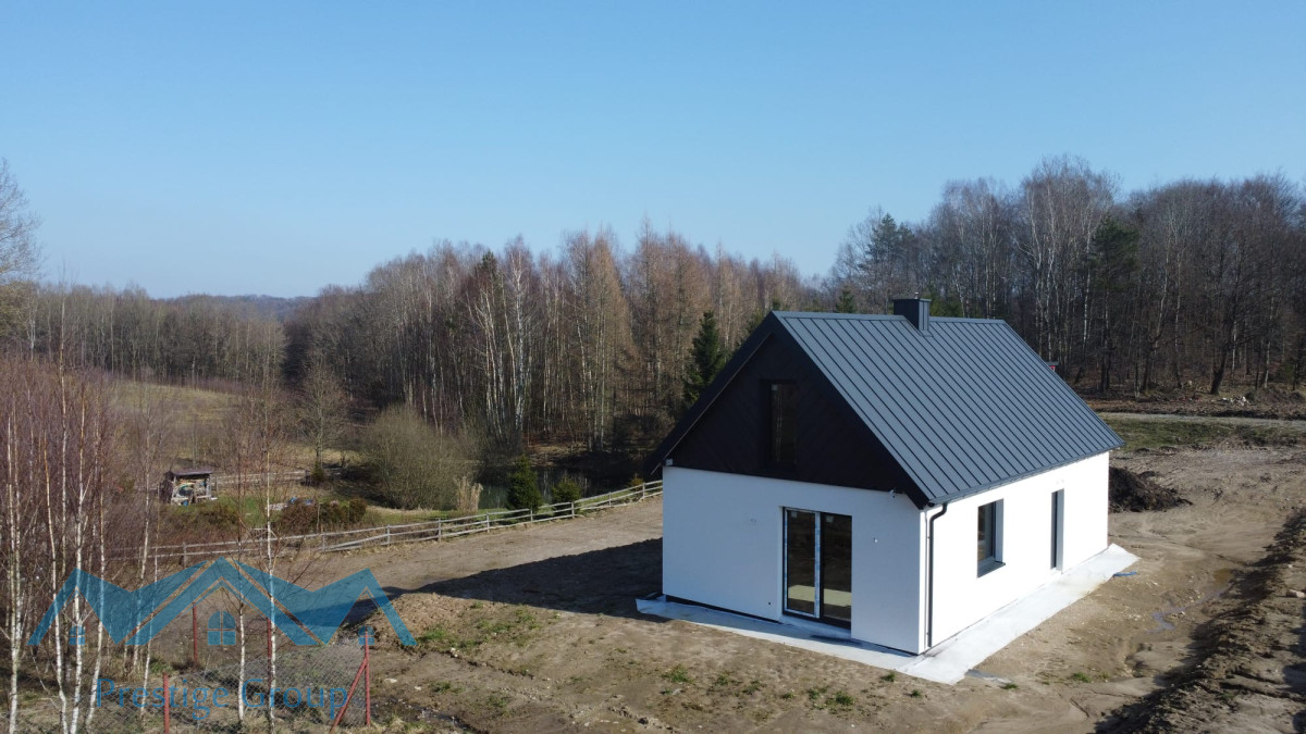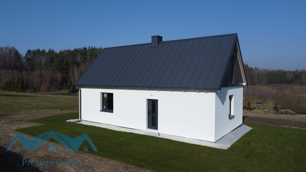 Budynek wykonany został z solidnego materiału, jakim jest gazobeton, z dachem pokrytym blachą płasko-narąbek oraz trzyszybowymi oknami PCV firmy Veka 3-szybowe i profil 7 komorowy, co gwarantuje doskonałą izolację termiczną i akustyczną.