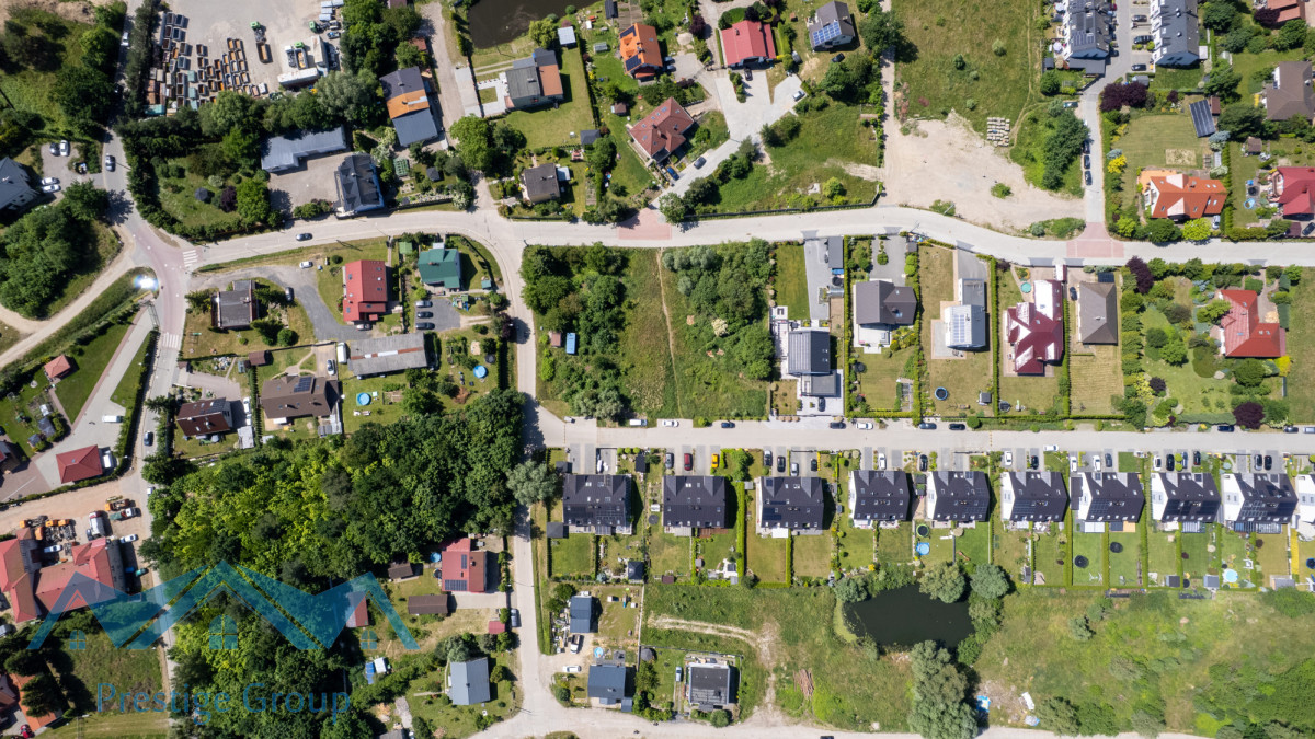 Jankowo Gdańskie to dyskretna enklawa, która z powodzeniem łączy podmiejski spokój z dogodnym dostępem do pulsującego życiem Trójmiasta. Położenie w województwie pomorskim, na obrzeżach Gdańska, oferuje optymalny kompromis między prywatnością a bliskością miejskich udogodnień. Region ten, ceniony za walory krajobrazowe i bliskość natury, jednocześnie dynamicznie adaptuje się do współczesnych potrzeb, rozwijając infrastrukturę z myślą o mieszkańcach. Działka wpisuje się w krajobraz harmonijnie rozwijającego się osiedla nowoczesnych domów jednorodzinnych. Jej położenie, z jednej strony otoczone zielenią, z drugiej przylegające do drogi gminnej, idealnie równoważy potrzebę intymności z zapewnieniem komfortowego dojazdu.