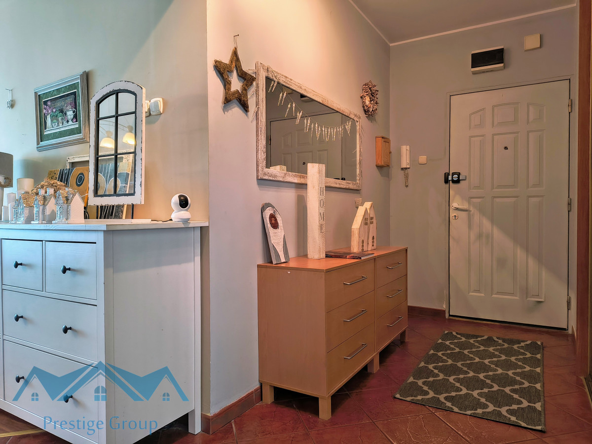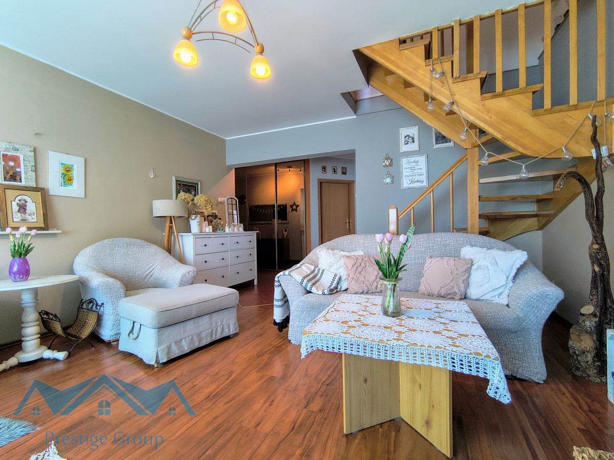 Mieszkanie jest jasne i dobrze doświetlone dzięki dwustronnej ekspozycji - okna wychodzą na północ i południe, co zapewnia przyjemne nasłonecznienie przez cały dzień. Układ wnętrza jest niezwykle funkcjonalny, a podział na dwa poziomy pozwala na wygodne rozdzielenie strefy dziennej od prywatnej.