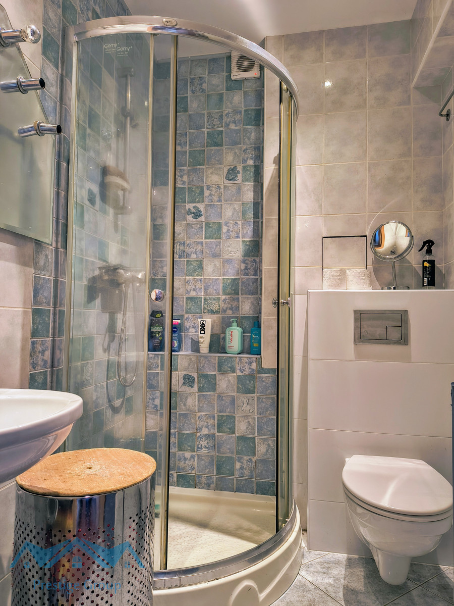 Drugi poziom, o powierzchni 30,5 m², to bardziej kameralna część mieszkania, idealna dla dzieci, gości lub jako domowe biuro. Dwie przytulne sypialnie z charakterystycznymi oknami dachowymi nadają wnętrzu niepowtarzalny klimat. Na tym poziomie znajduje się również druga łazienka, wyposażona w wannę, co zwiększa komfort codziennego użytkowania.