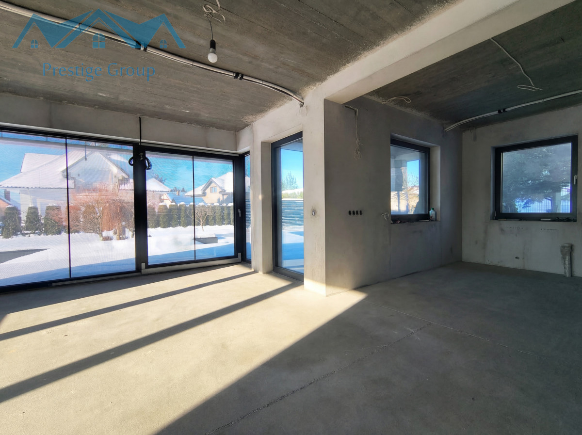 W strefie dziennej zastosowano wielkoformatowe okno tarasowe z innowacyjnymi lamelami przeciwsłonecznymi ukrytymi wewnątrz szyb. Takie rozwiązanie pozwala cieszyć się jasnym wnętrzem bez dostępu promieni słonecznych .